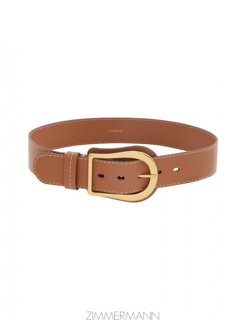 The Wide Leather Belt 40 in Avalon from our Summer Swim 2024 Collection. A leather belt featuring a twisted gold buckle and custom branding.- Waist belt