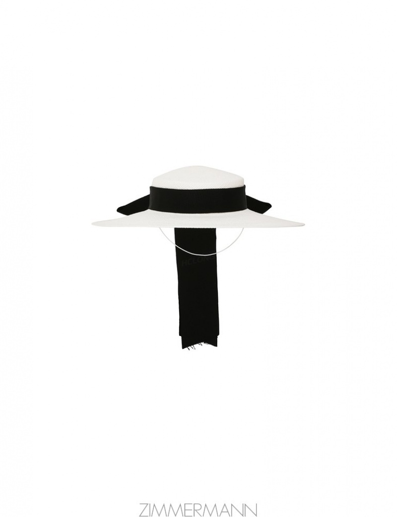 The Straw Boater in Ivory from our Resort 2024 Collection, Matchmaker. A wide brim straw hat featuring a contrast tie around the crown.- Straw boater