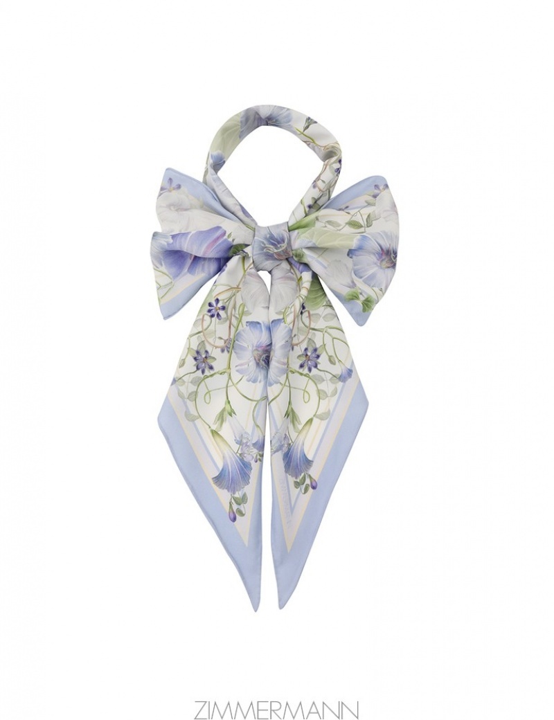 Blue Floral Zimmermann Printed Silk Neck Scarf Scarves