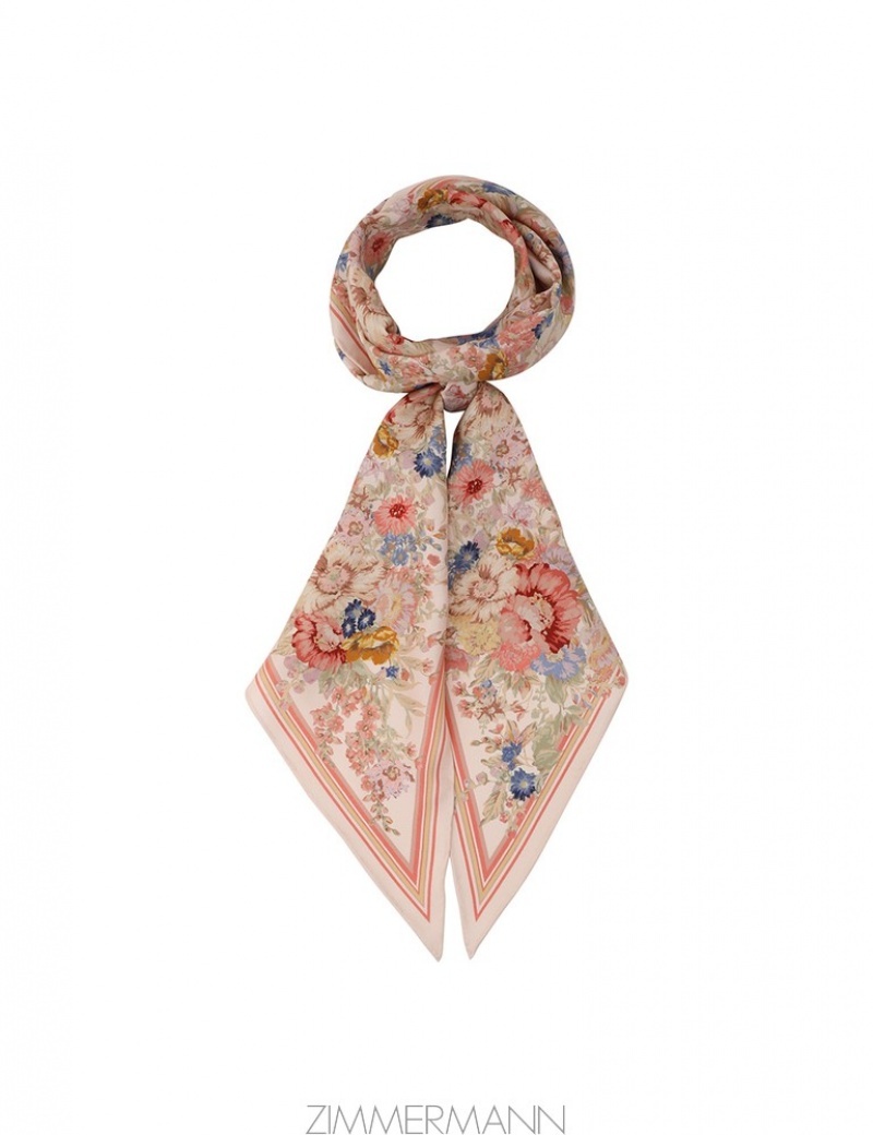 Cream Floral Zimmermann Printed Silk Neck Scarf Scarves