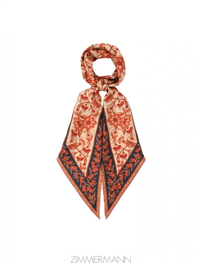 Dark Navy Floral Zimmermann Printed Silk Neck Scarf Scarves