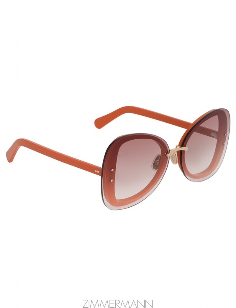 The ZIMMERMANN Sensory Butterfly in Pumpkin from our Fall 2023 Collection, Luminosity. An oversized butterfly frame featuring gradiating lenses.- Tonal lenses
