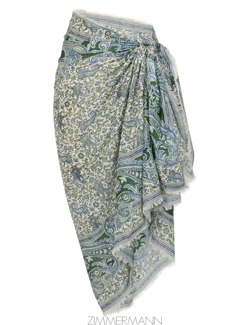 Green Paisley Zimmermann Printed Cotton Pareo Towels and Pareos