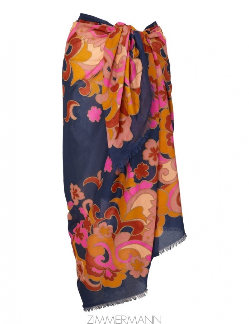 Navy Paisley Zimmermann Printed Cotton Pareo Towels and Pareos
