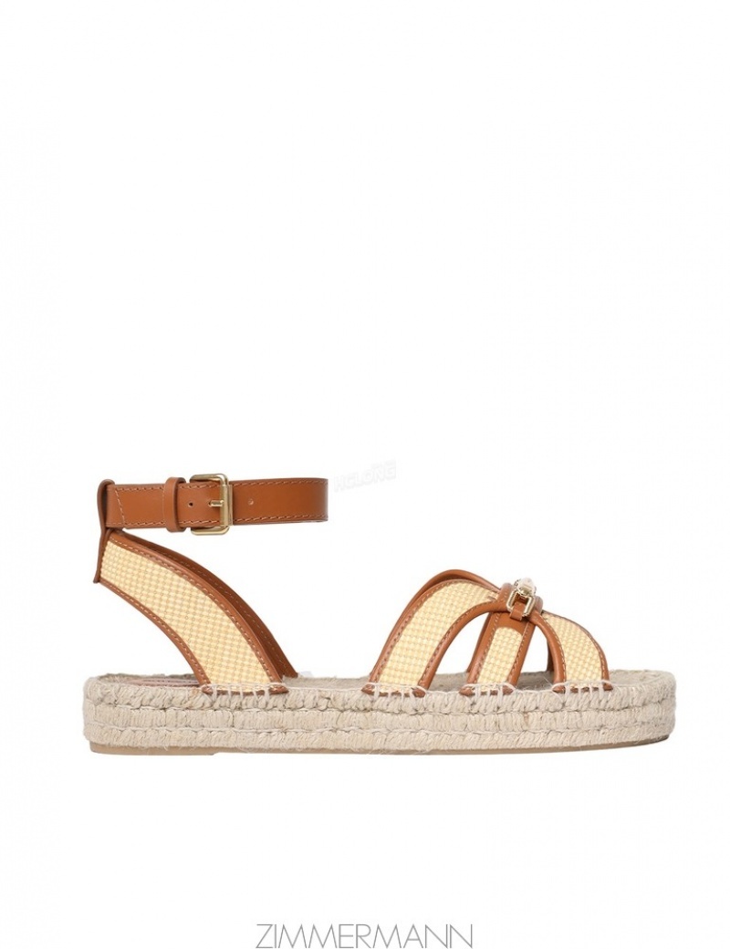 The Zimmermann Prisma Sandal in Avalon from our Spring 2024 Collection, Natura. A leather espadrille sandal featuring contrast raffia throughout and ZIMMERMANN branded hardware.- Leather espadrille