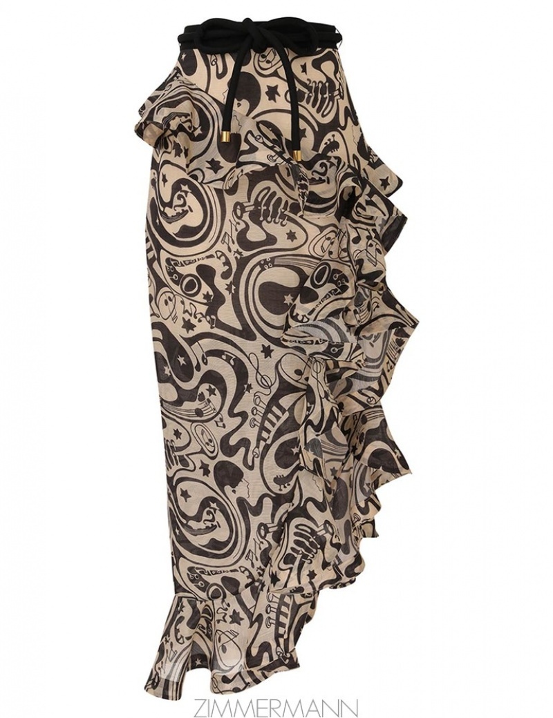 Black/Tea Abstract Musical Zimmermann Matchmaker Waterfall Skirt Skirts