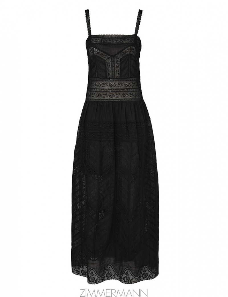 Black Zimmermann Halliday Lace Trim Slip Dress Clothing