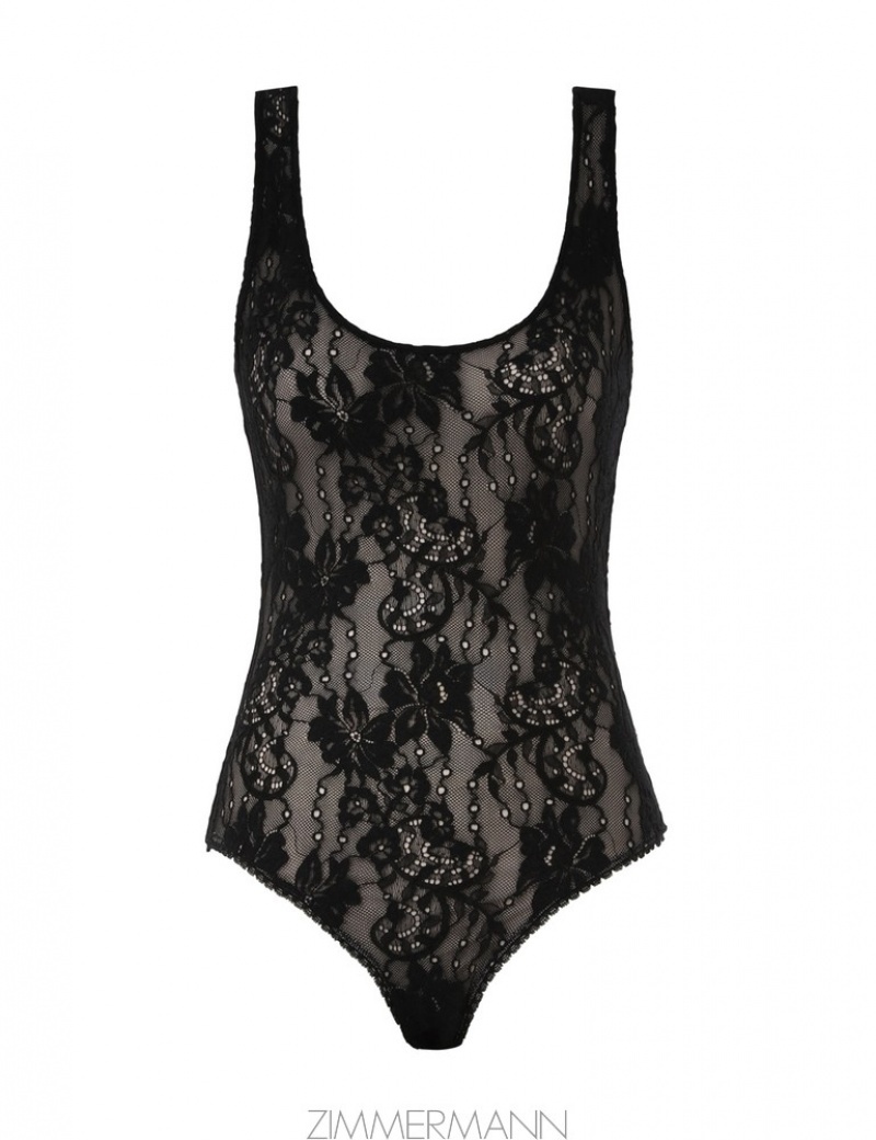 Black Zimmermann Lace Scoop Bodysuit Tops