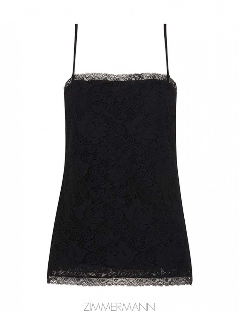 The Lace Top in Black from our Spring 2024 Collection, Natura. A lace top featuring a lace trim along neckline and adjustable straps.- Lace top