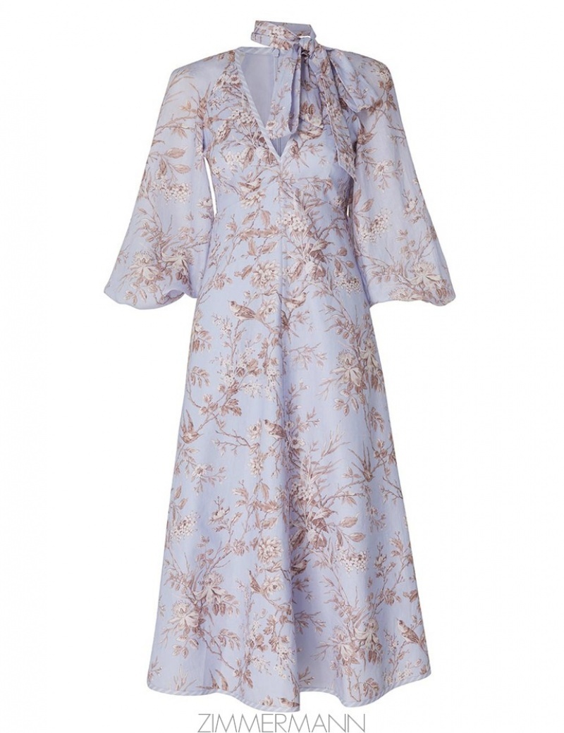 Blue Mockingbird Zimmermann Tie Neck Midi Dress Dresses