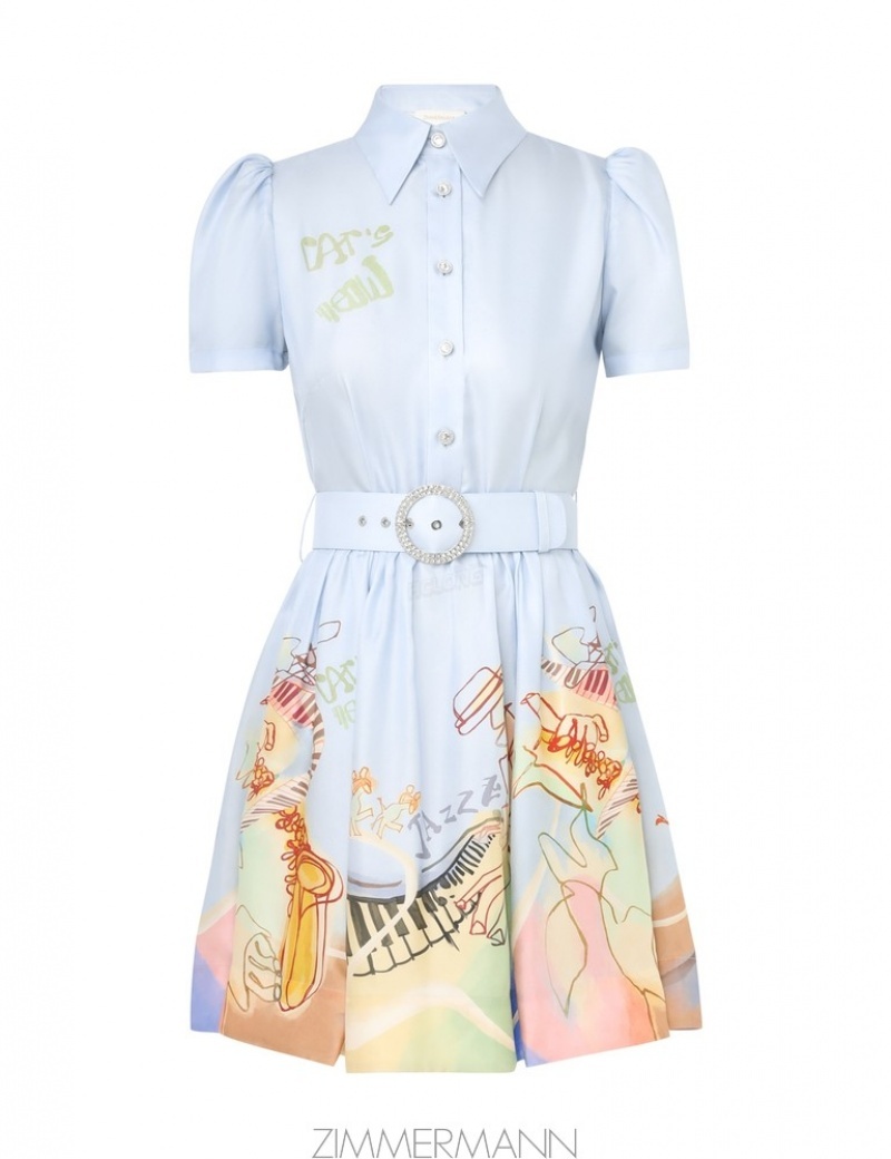 Blue Poster Zimmermann Matchmaker Shirt Mini Dress Dresses