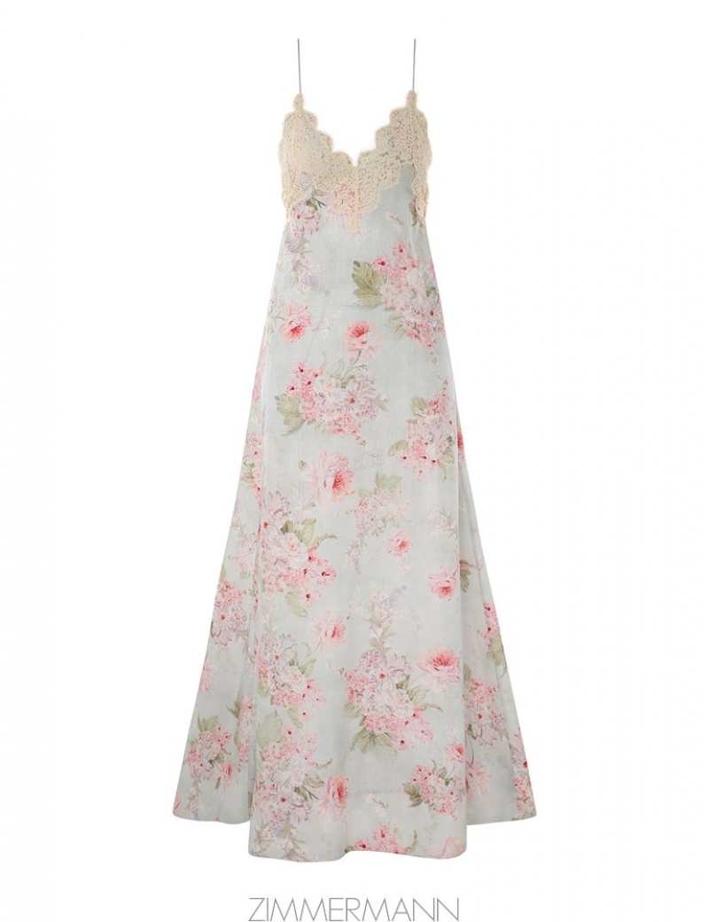 Blue Watercolour Floral Zimmermann Halliday A-line Maxi Dress Clothing
