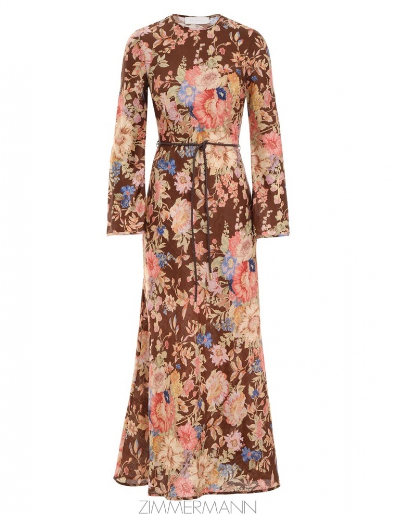 Chocolate Floral Zimmermann August Bias Long Dress Clothing