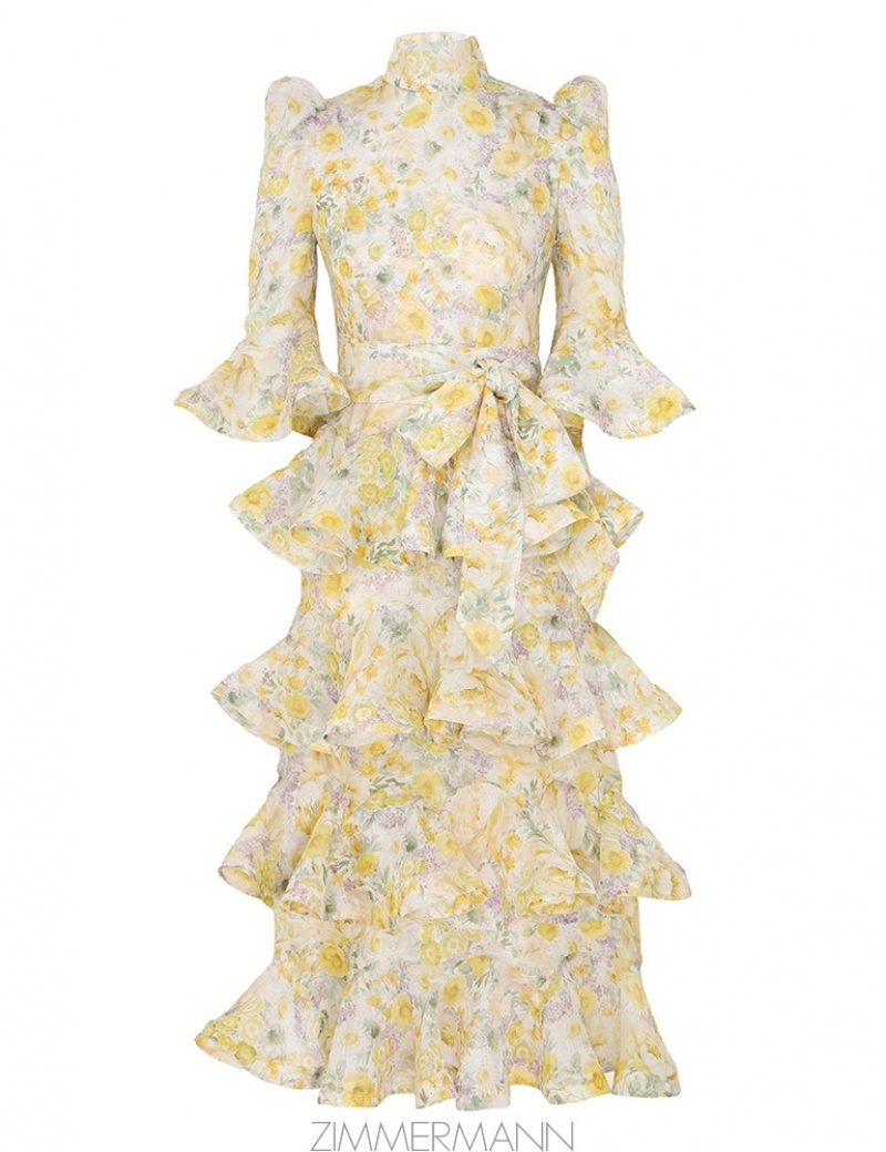 - Citrus Garden Print Zimmermann Harmony Tiered Midi Dress Dresses
