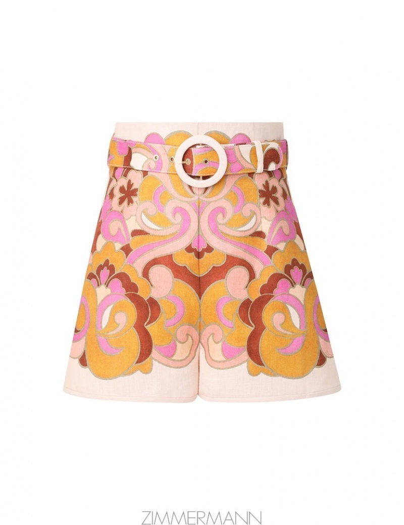 Coral/Tan Paisley Zimmermann Acadian Fitted Short Clothing