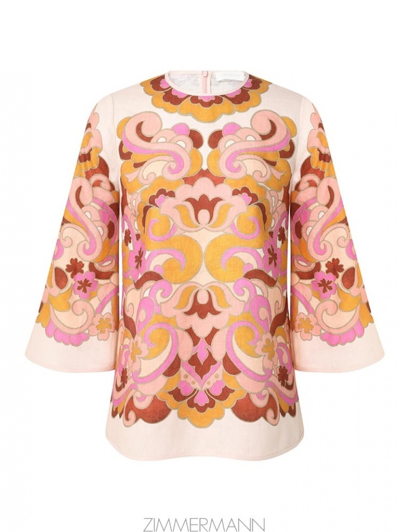 Coral/Tan Paisley Zimmermann Acadian Tunic Top Clothing