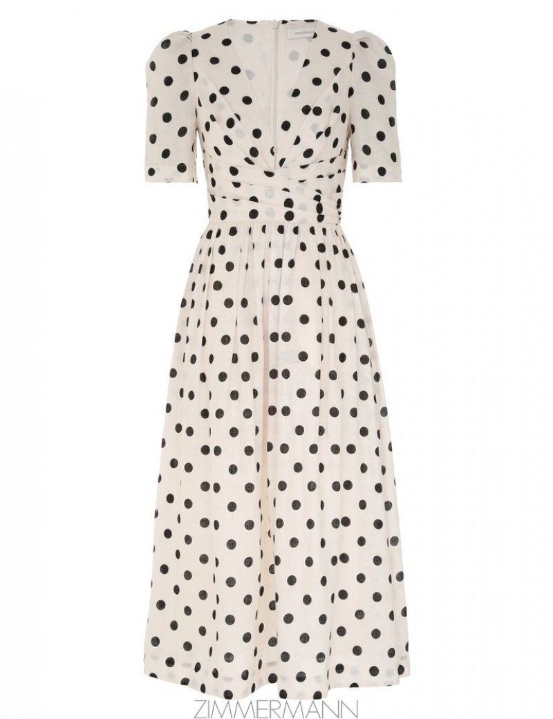 Cream/Black Dot Zimmermann V Neck Midi Dress Dresses