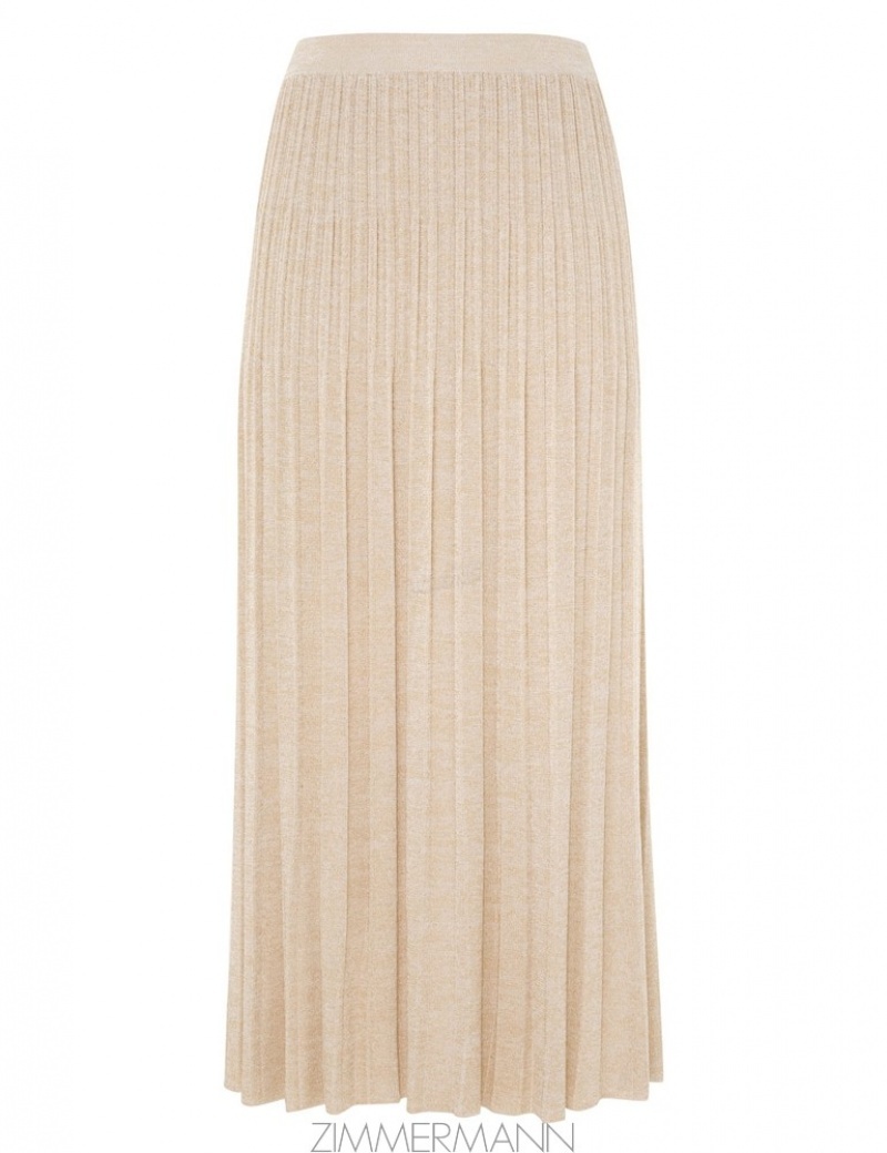 - Cream Lurex Zimmermann Halliday Rib Midi Skirt Skirts