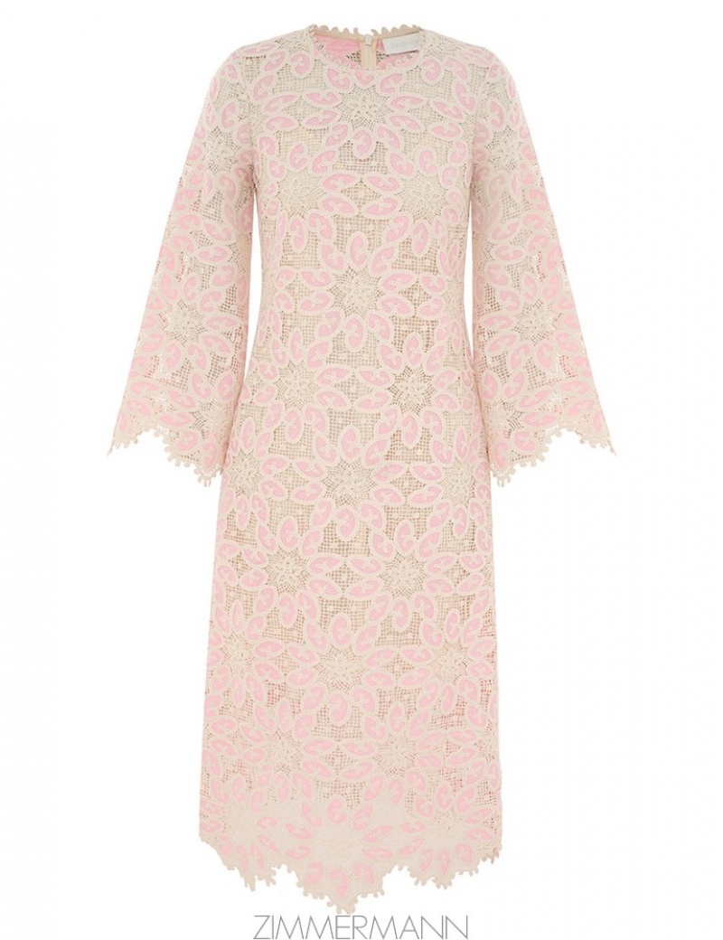 Cream/Pink Zimmermann Ottie Lace Midi Dress Clothing