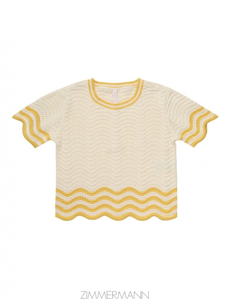 Cream/Yellow Zimmermann Alight Textured Knit Tee Kids Tops