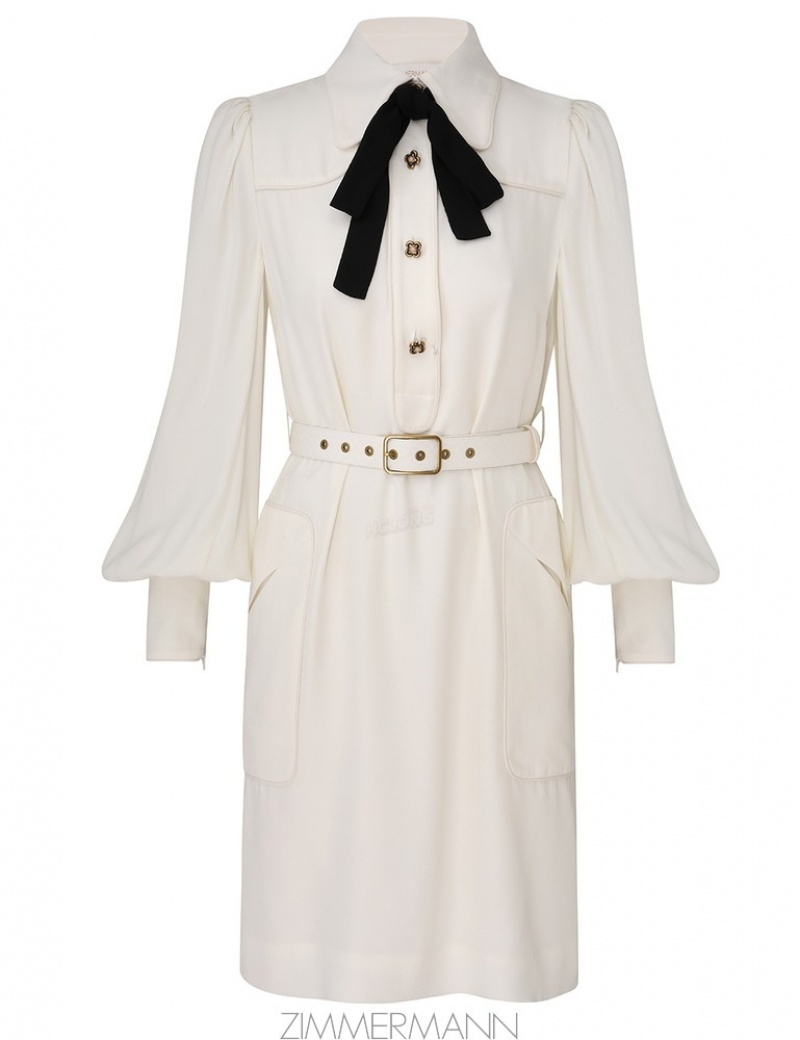 The Collared Swing Dress in Cream from our Spring 2024 Collection, Natura. A long sleeve mini dress featuring buttons down the centre front and piping throughout.- Long sleeve mini dress