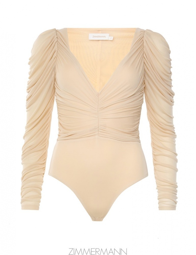 Cream Zimmermann Natura Gathered Bodysuit Tops