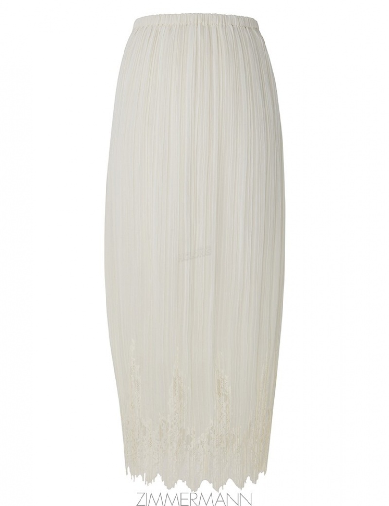 The Pleated Skirt in Cream from our Spring 2024 Collection, Natura. A pleated midi skirt featuring an elasticated waistband and wide scalloped hem.- Pleated midi skirt
