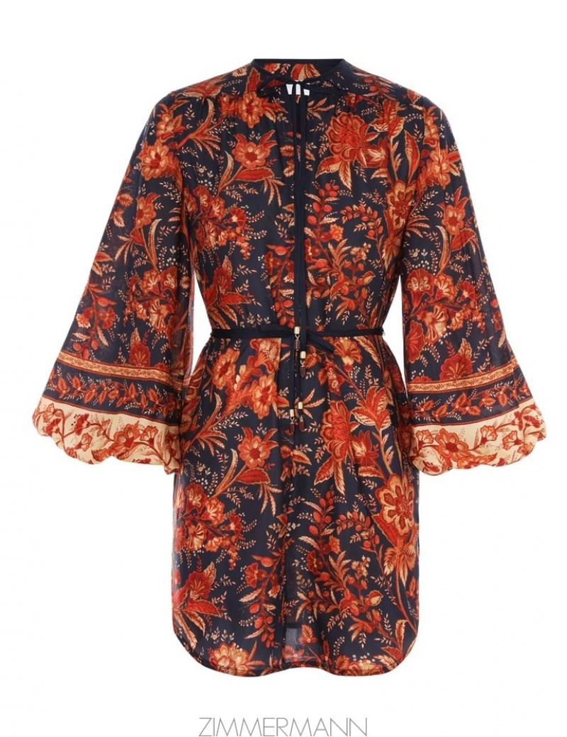 Dark Navy Floral Zimmermann Junie Tunic Top Clothing