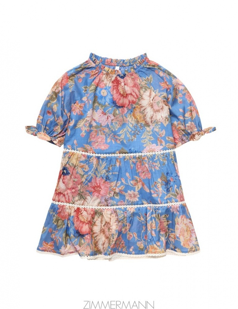 Dusty Blue Floral Zimmermann August Puff Sleeve Mini Dress Kids Dresses