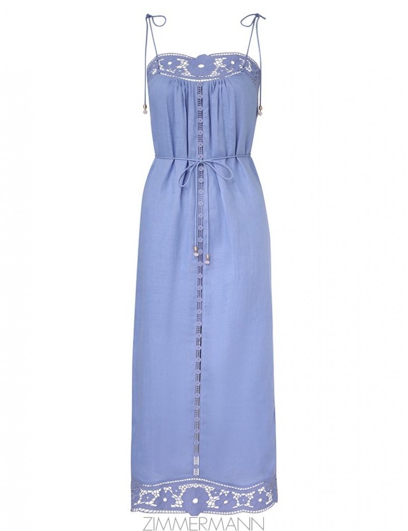 Dusty Blue Zimmermann August Broderie Slip Dress Clothing