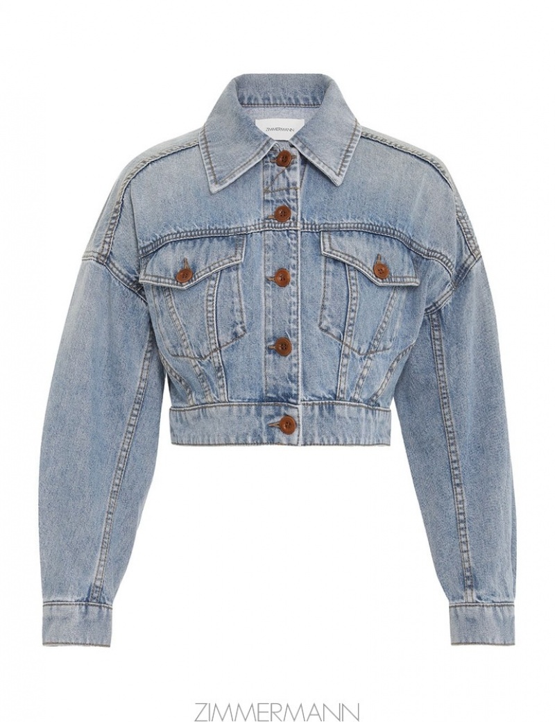 - Faded Blue Zimmermann Cropped Denim Jacket Shirt