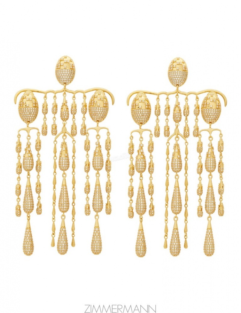 The Zimmermann Midnight Chandelier in Gold from our Spring 2024 Collection, Natura. A gold plated drop earring featuring cubic zirconia stones throughout.- 12KT gold plated brass