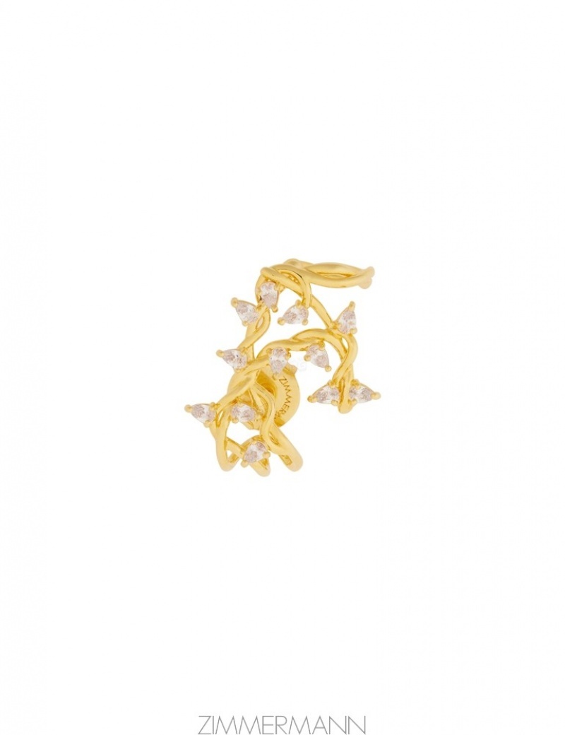 The Zimmermann Radiant Ear Crawler in Gold from our Spring 2024 Collection, Natura. A gold plated ear cuff featuring cubic zirconia stones throughout.- 12KT gold plated brass