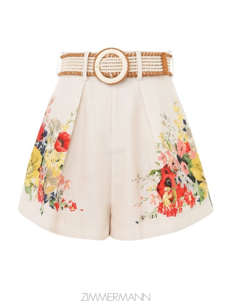 Ivory Floral Zimmermann Alight Tuck Short Clothing
