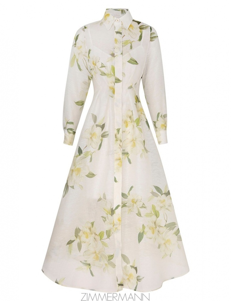 - Ivory Magnolia Zimmermann Harmony Draped Shirt Dress Dresses