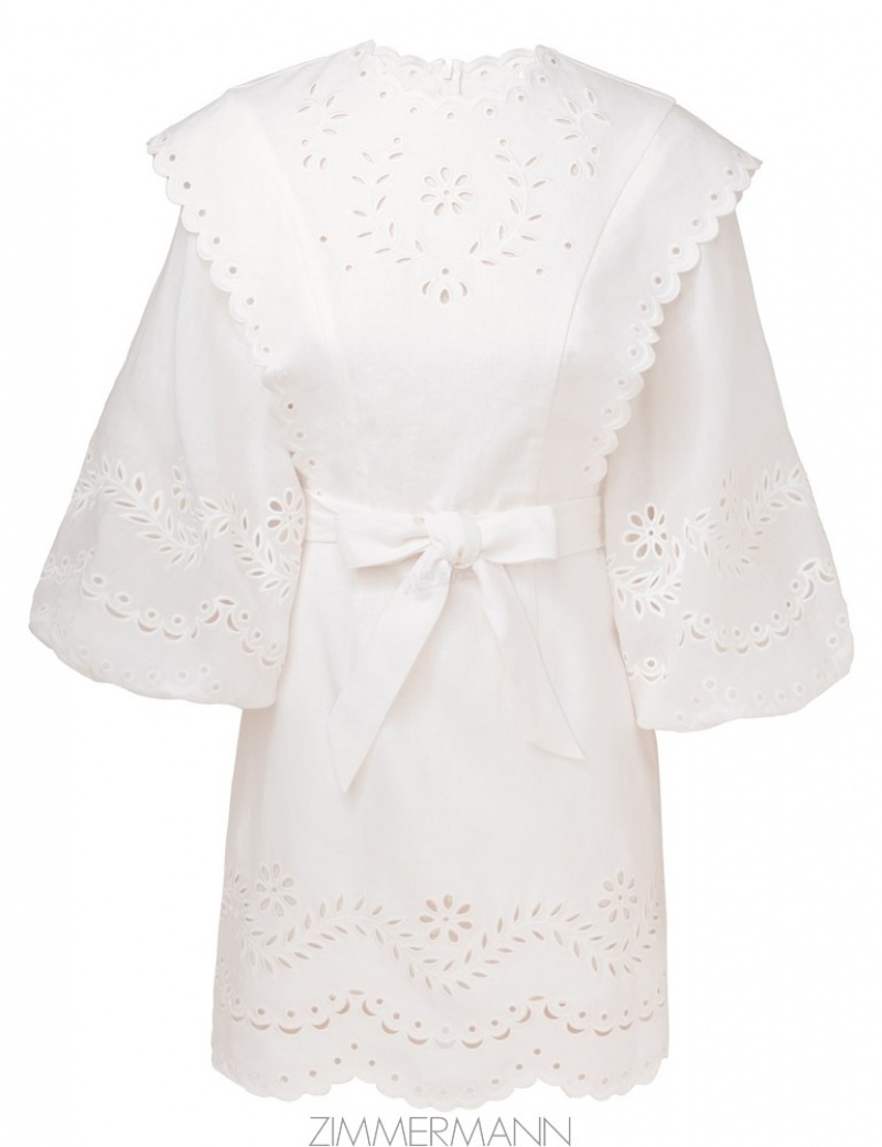 Ivory Zimmermann Junie Embroidered Mini Dress Clothing