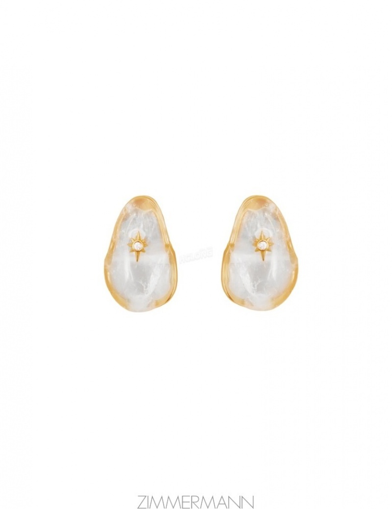 Gold/Transparent Quartz Zimmermann Crystal Pebble Earrings Earrings