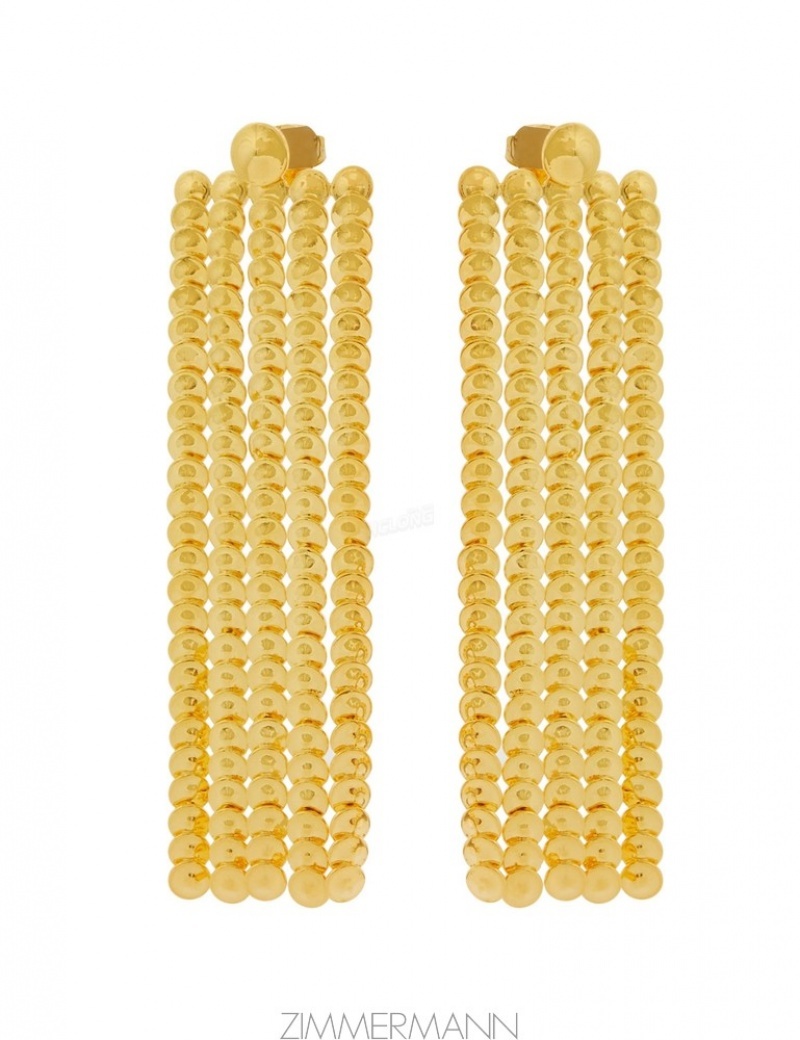 The Zimmermann Swing Chandeliers in Gold from our Resort 2024 Collection, Matchmaker. A gold plated drop earring featuring elongated strings of sphere beads throughout.- 12KT gold plated