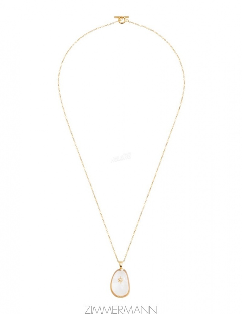 Gold/Transparent Quartz Zimmermann Crystal Pebble Necklace Necklaces