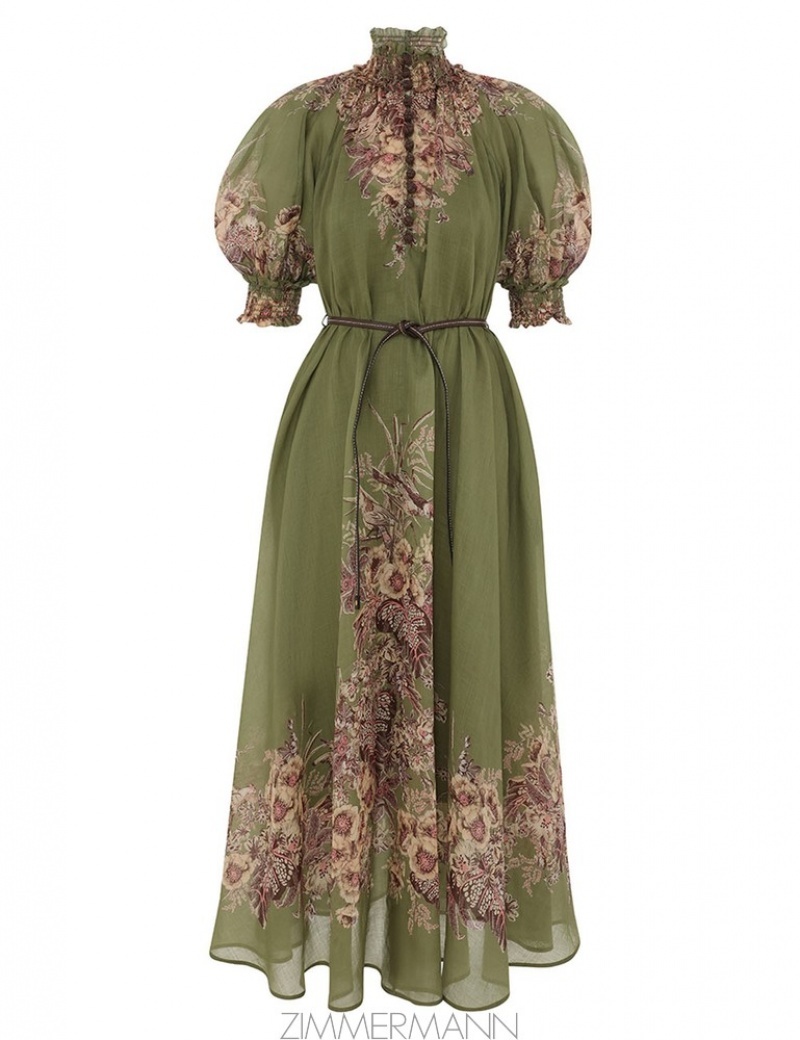 Khaki Floral Zimmermann Ottie Swing Maxi Dress Clothing