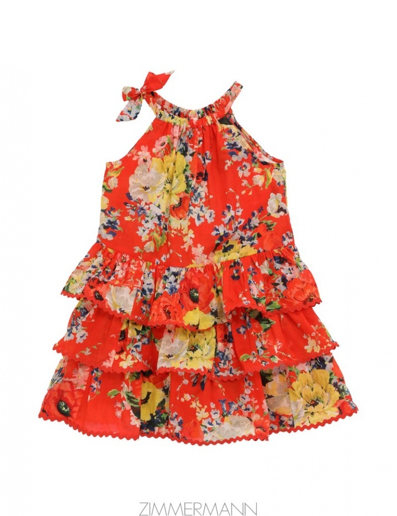 Red Floral Zimmermann Alight Tiered Halter Dress Kids Dresses