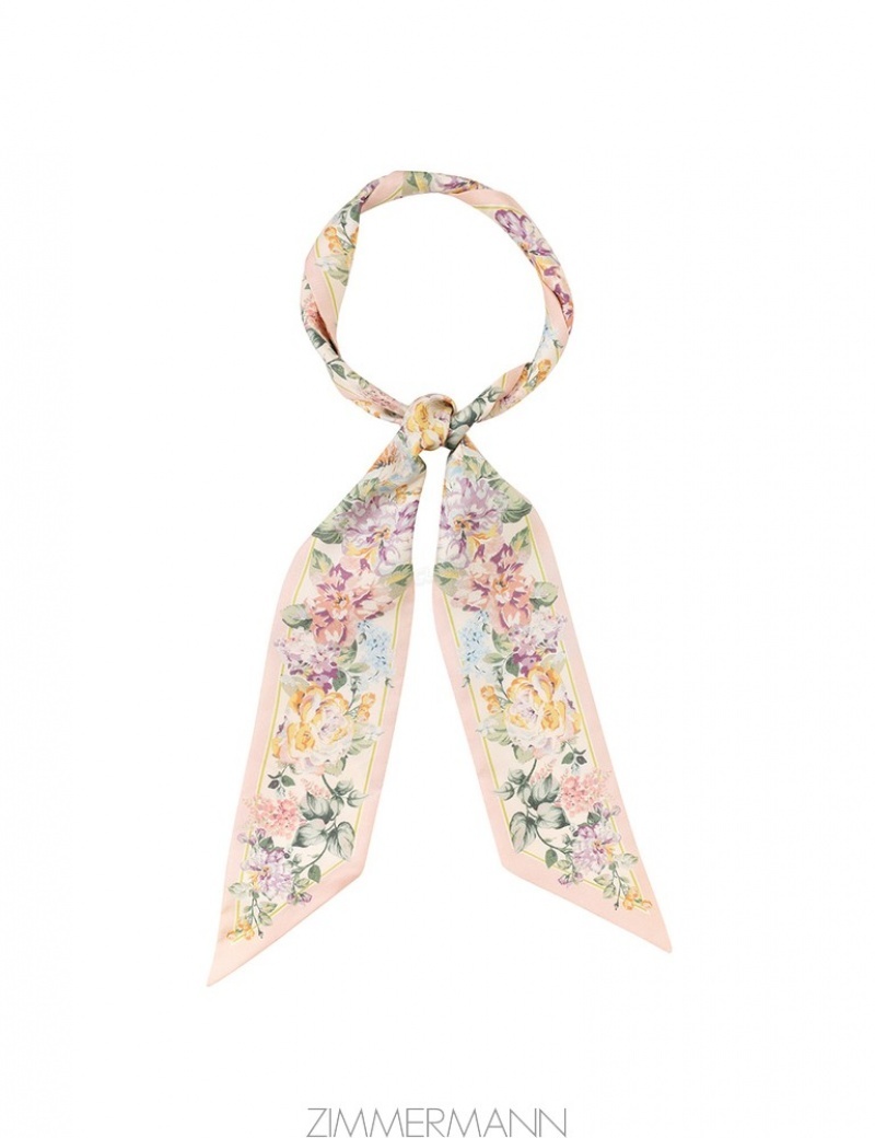 Multi Watercolour Floral Zimmermann Printed Silk Ribbon Scarf Scarves
