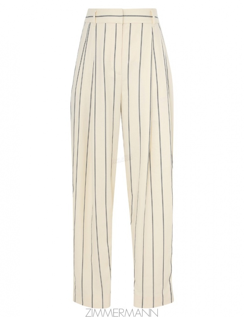 Navy/Cream Stripe Zimmermann Natura Cropped Barrel Pant Shorts & Pants