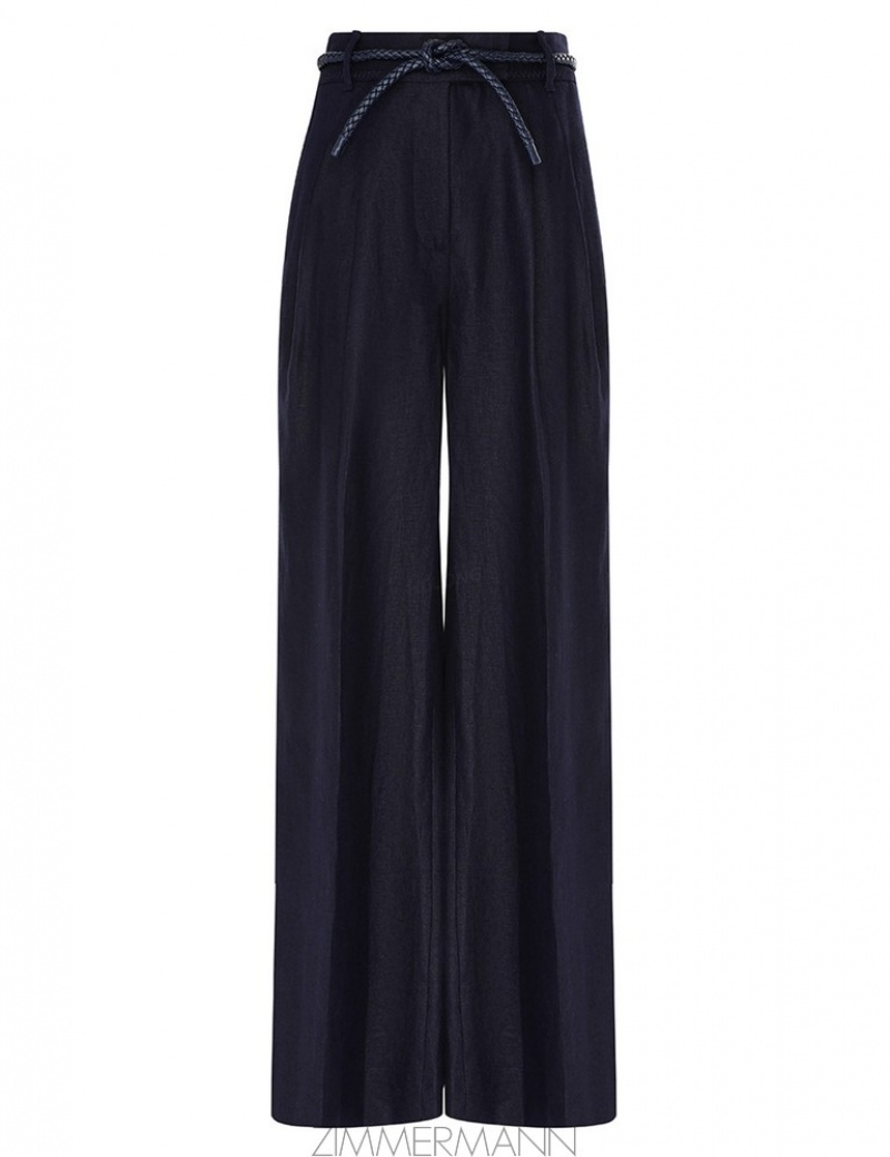- Navy Zimmermann Natura Linen Wide leg Pant Shorts & Pants