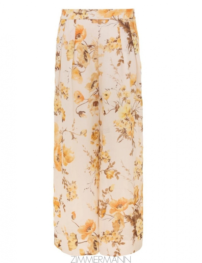 Orange Floral Zimmermann Ottie Wide Leg Pant Clothing