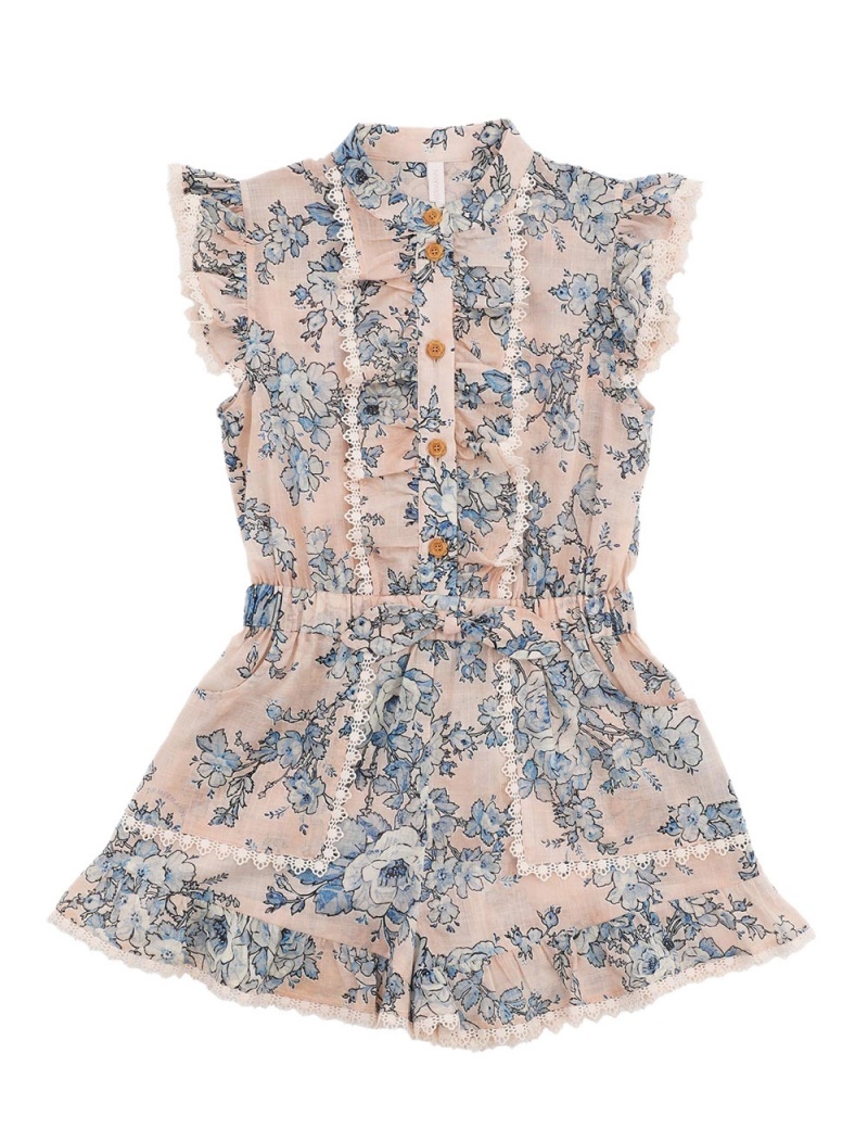 Peach/Blue Floral Zimmermann Halliday Frill Playsuit Kids Dresses