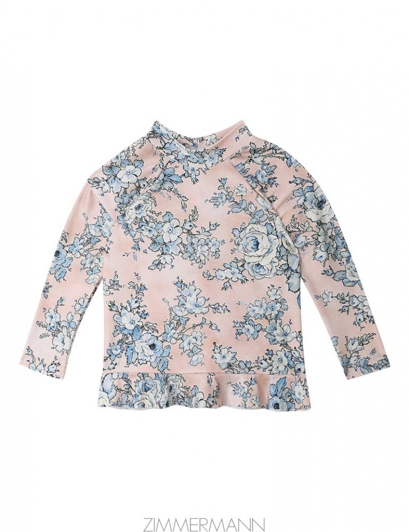 Peach/Blue Floral Zimmermann Halliday Frill Rashie Kids Swimwear