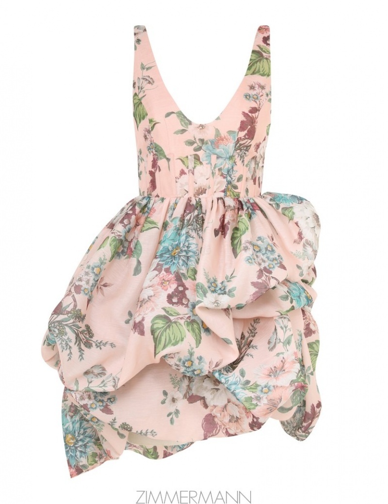 Pink Barkcloth Print Zimmermann Matchmaker Drape Mini Dress Dresses