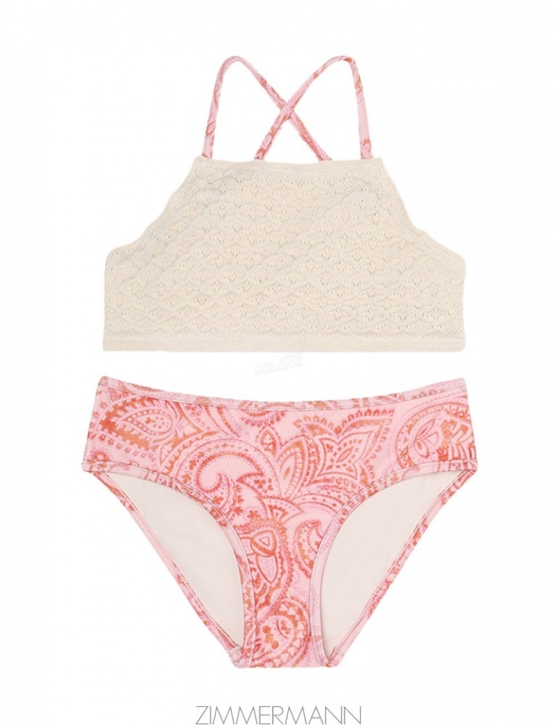 Pink Paisley Zimmermann Ottie Crochet Bikini Kids Swimwear