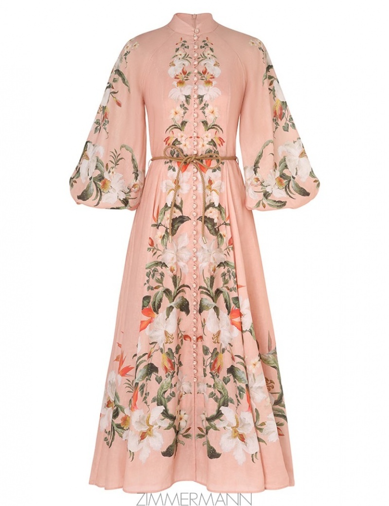Pink Palm Zimmermann Lexi Billow Long Dress Clothing